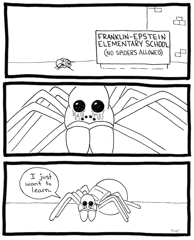 I guess I’ll just kill all the spiders I find then… poor guys– can’t get an education and they are hunted by giants… some people just can’t catch a break.