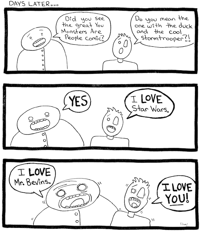 I feel terrible that I didn’t know Bevins was your duck character’s name! Are there any other characters whose names I should be made aware of, to avoid future embarrassment?