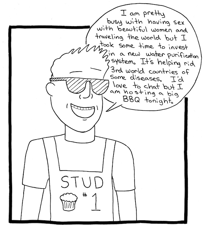 “The great thing about this country is everyone has the same exact minimal opportunities. Sure, some people are born with more opportunities than others, but we all have the same minimal ones. We can all graduate high school and go to college. We all might not be able to afford it, but you have to roll the dice and take out loans. If you choose to live conservatively you better expect to have to grind everyday and barely make it by.” -Justin Samland